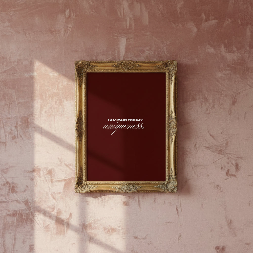 each poster is encoded to support a grounded, sustainable relationship with wealth. the bundle is designed to shift the atmosphere of a room and to anchor a state of value, receiving, and creative self trust over time.